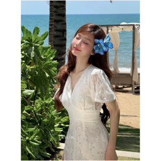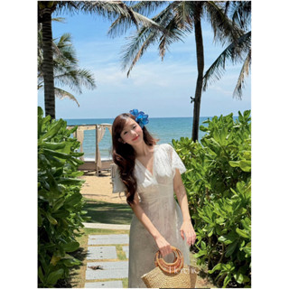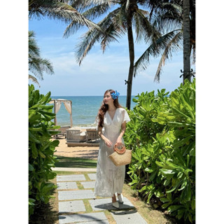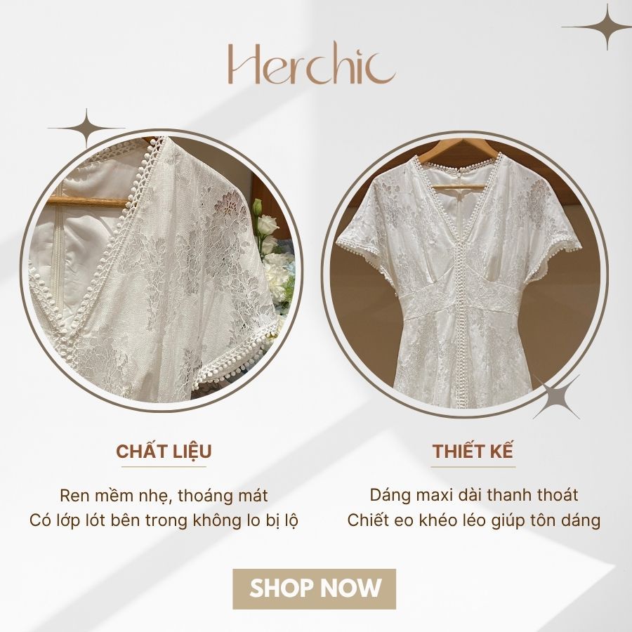 Váy Đi Biển Thiết Kế Ren Trắng Dáng Dài Herchic